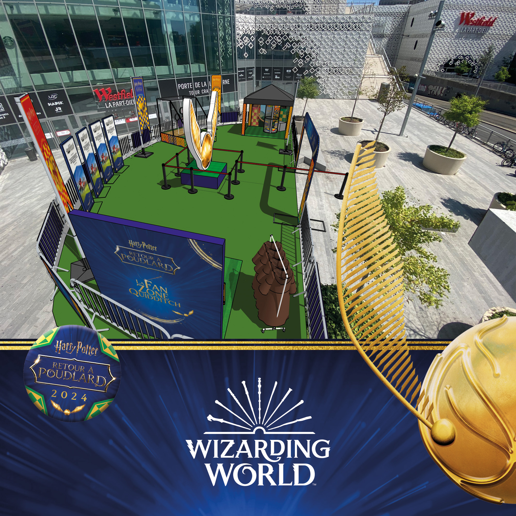 Transformer le parvis d’un centre commercial lyonnais en Fan Zone de Quidditch pour Warner.